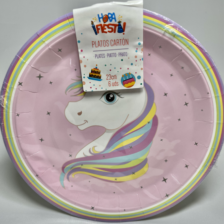 Hermosos platos de cartón resistentes con una imagen maravillosa de unicornio, que harán de tu mesa temática una fiesta fantástica.