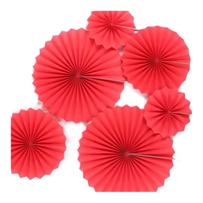 Set de 6 Hermosos abanicos en color rosa de diferentes dimensiones, que realzaran tu decoración temática en ese día especial , el mejor complemento para tu fiesta.