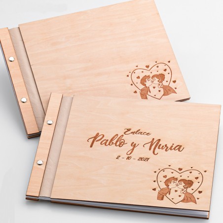 Libro de firmas de madera ideal para la recepción de tu boda. En este hermoso libro cada uno de tus invitados podrán dejarte buenos deseos para que los guardes como recuerdo.