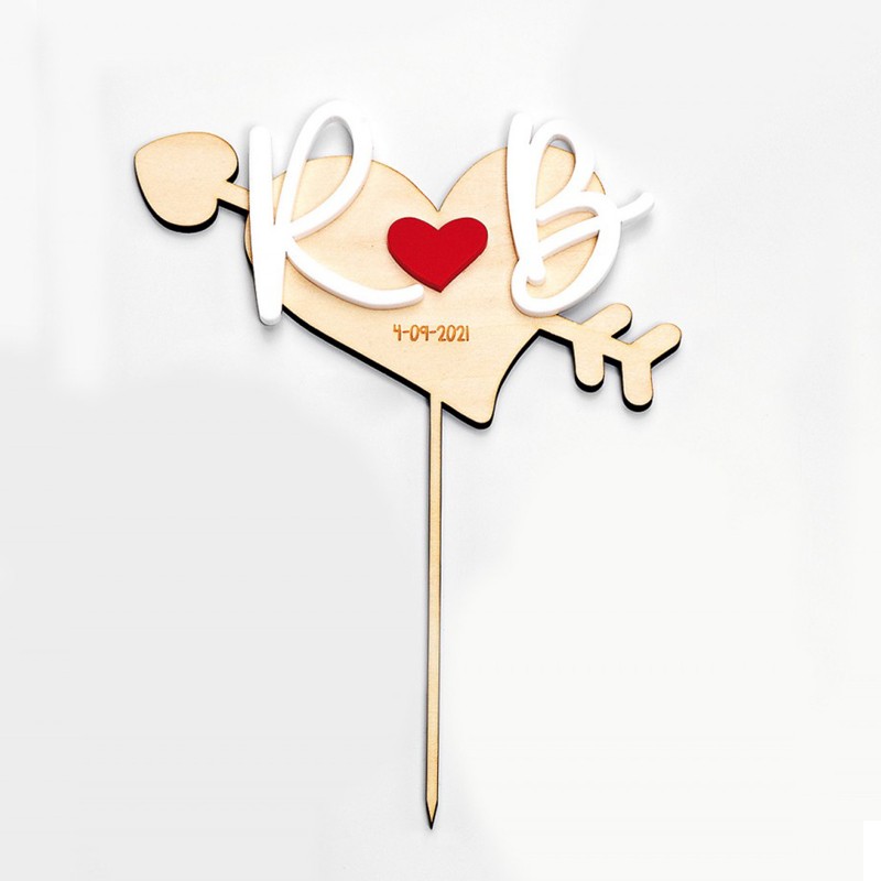 Cake Topper de corazón con flecha e iniciales