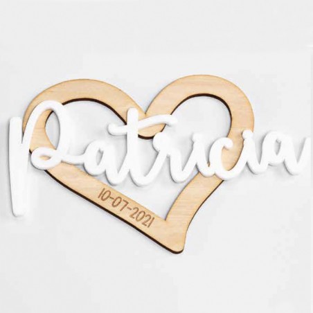 Cartel para la silla de la novia con corazón y nombre en metacrilato perfecto para el día de tu boda.