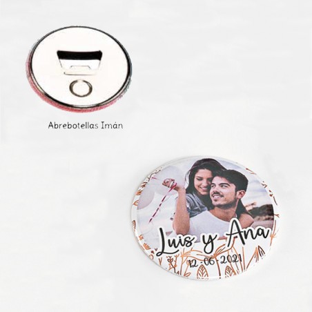 Chapas de imán abrebotellas personalizadas para boda
