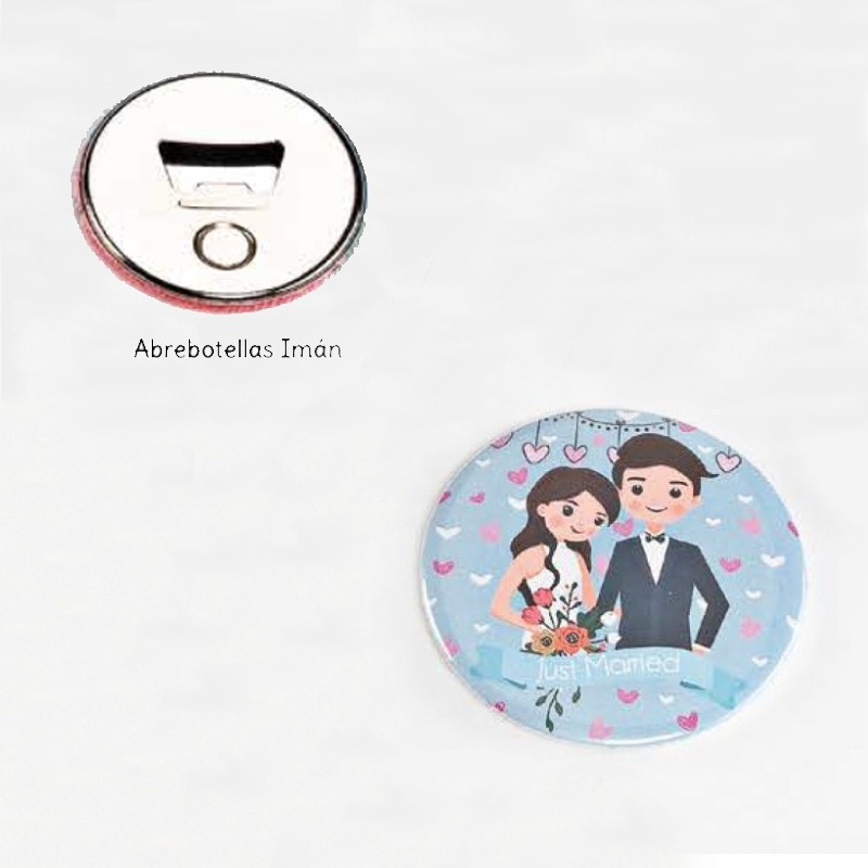 Chapas de imán abrebotellas Just Married