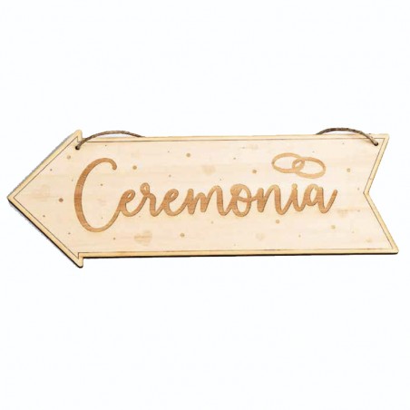 Cartel de madera para señalizar hacia dónde queda la ceremonia.
