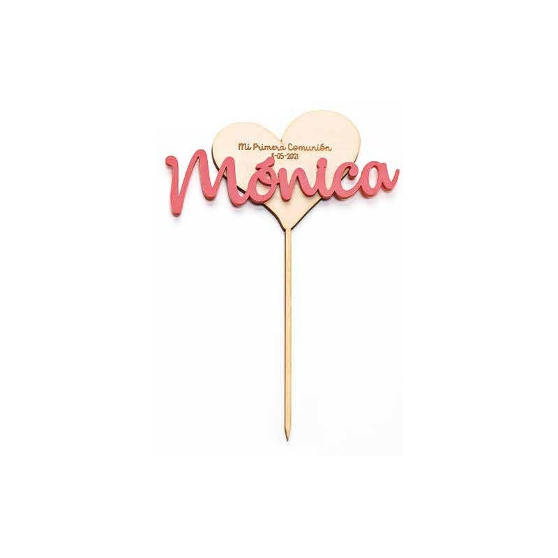 Cake Topper Corazón Madera nombre metacrilato azul y fecha personalizado, ideal para tus tartas o mesas temáticas