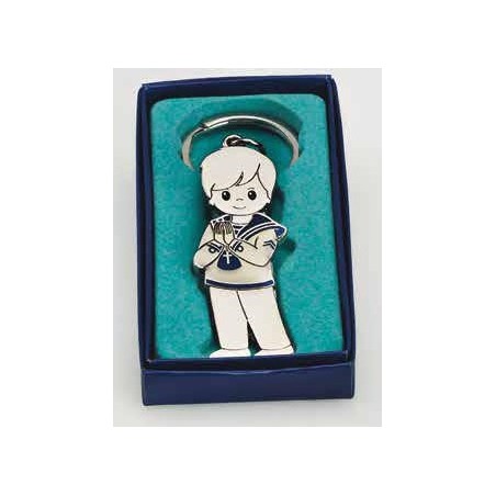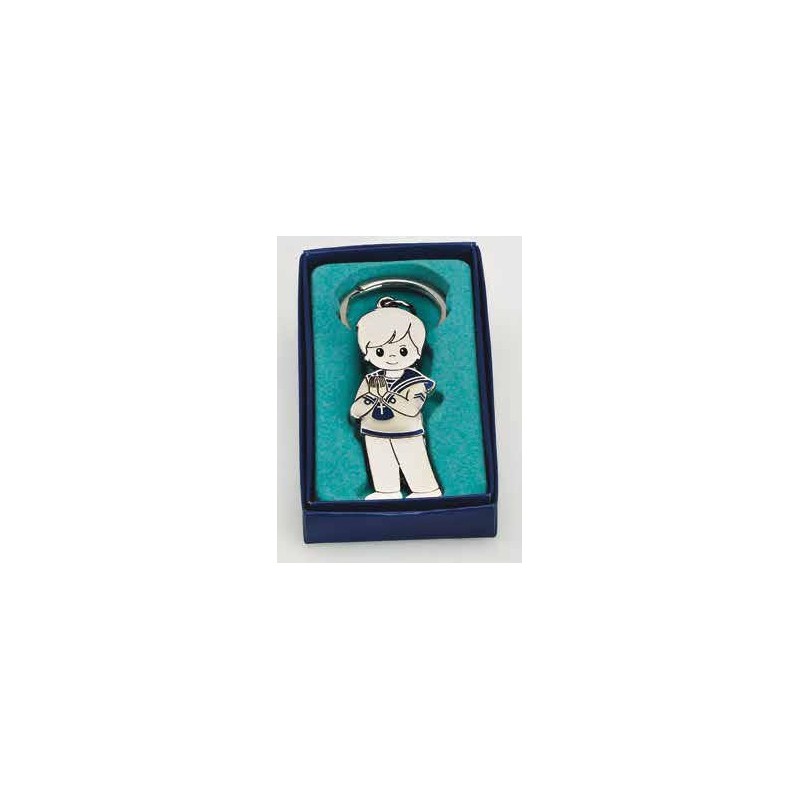 Un llavero niño Comunión Marinero Sargento, muy original para regalar a los invitados de la Primera Comunión de tu niño. El llavero de metal tiene la forma de un niño que va vestido de marinero comunión.